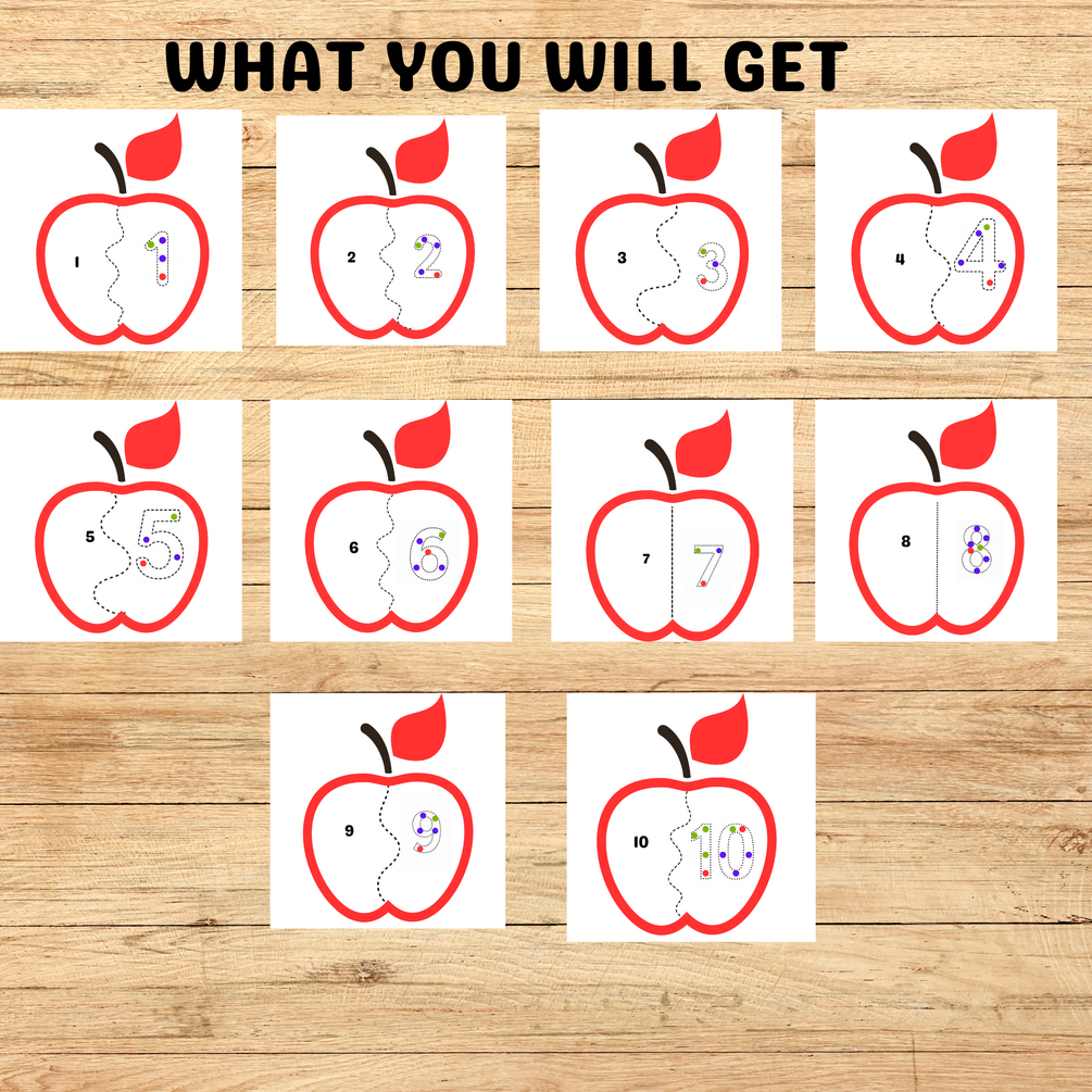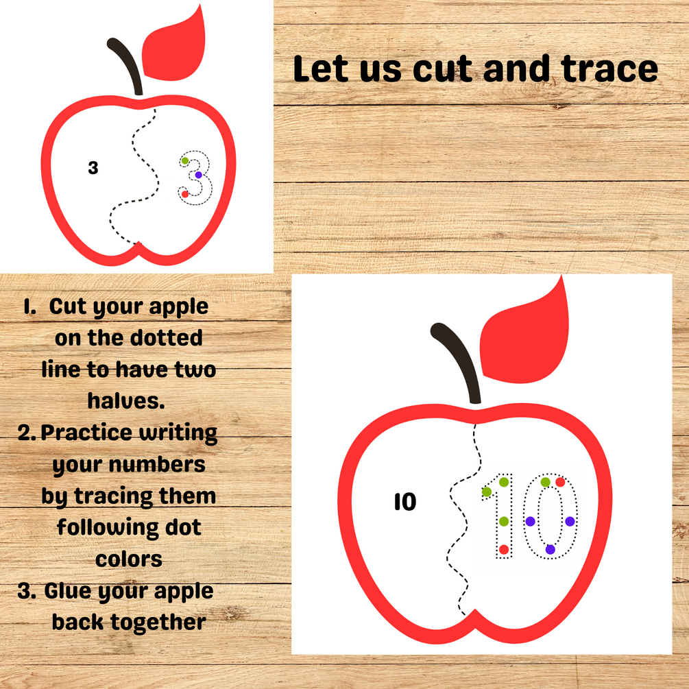 Apple Number Cutting & Tracing Activity for Preschoolers | Fine Motor Skills | Number Recognition & Counting Practice | Fun Cut-and-Paste Printable for Toddlers
